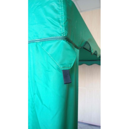 Крыша фиксируется к каркасу беседки с помощью стропы с пряжкой и надежной липучки. Даже при сильном ветре полотно остается на своем месте.