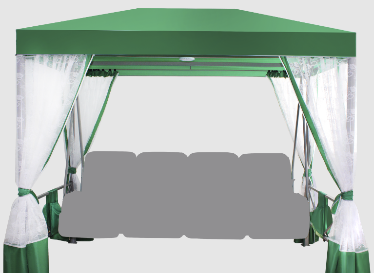 Мы предлагаем вам приобрести матрац, предназначенный для четырёхместных садовых качелей, у такого матраца зелёный цвет, он сделает ваш отдых на свежем воздухе намного более комфортным, вам больше не придётся сидеть на твёрдых садовых качелях. Для изготовления данного матраса используется очень качественная ткань и наполнитель, который не портится со временем, его не испортит плохая погода.